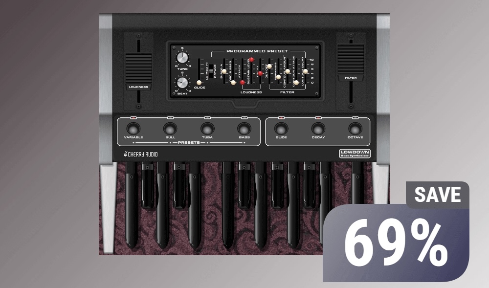 Cherry Audio’s Lowdown brings the massive, thunderous sound of the iconic dual-oscillator bass pedal synth of the ’70s and ’80s into plugin form for the very first time. Famous for powering tracks by Rush, Genesis, The Police, and U2, this foot-controlled behemoth is now reborn with meticulous circuit-level modeling by DSP legend Mark Barton (MRB).