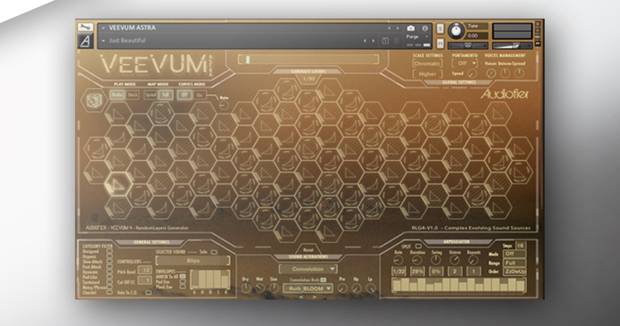 Powered by the signature VEEVUM engine and intuitive honeycomb interface, ASTRA lets you explore sound by ear, not preset namesโmaking inspiration fast, musical, and deeply creative. Perfect for ambient music, film scoring, and experimental production.