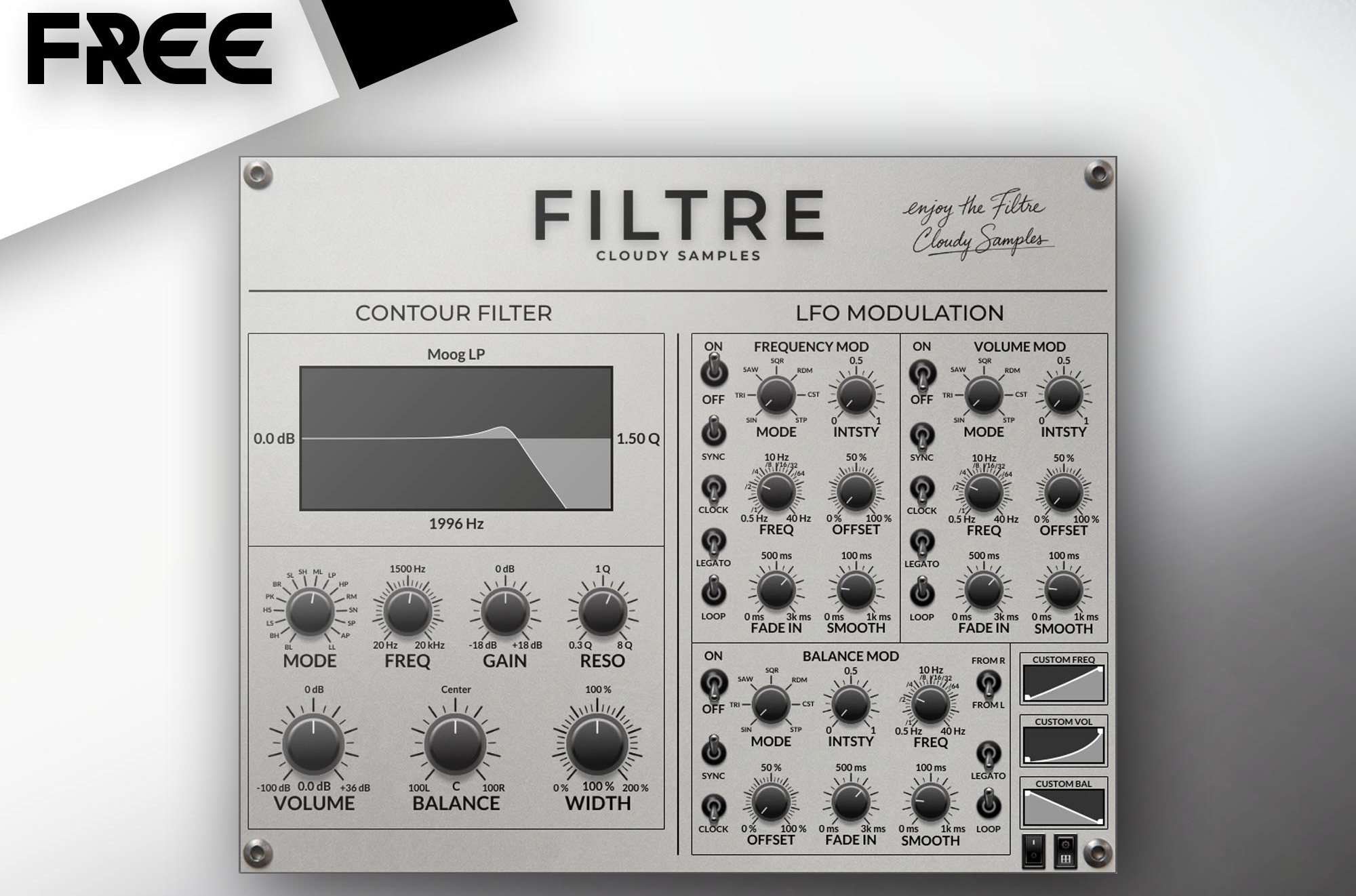 HomeFree PluginPLUGINOMAT - FREE PRODUCT - FILTRE by Cloudy Samples